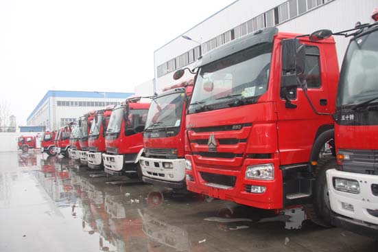 下图是柬埔寨公安部来平博pinnacle体育平台检查验收115台庆铃五十铃泡沫消防车和发车场景图:
